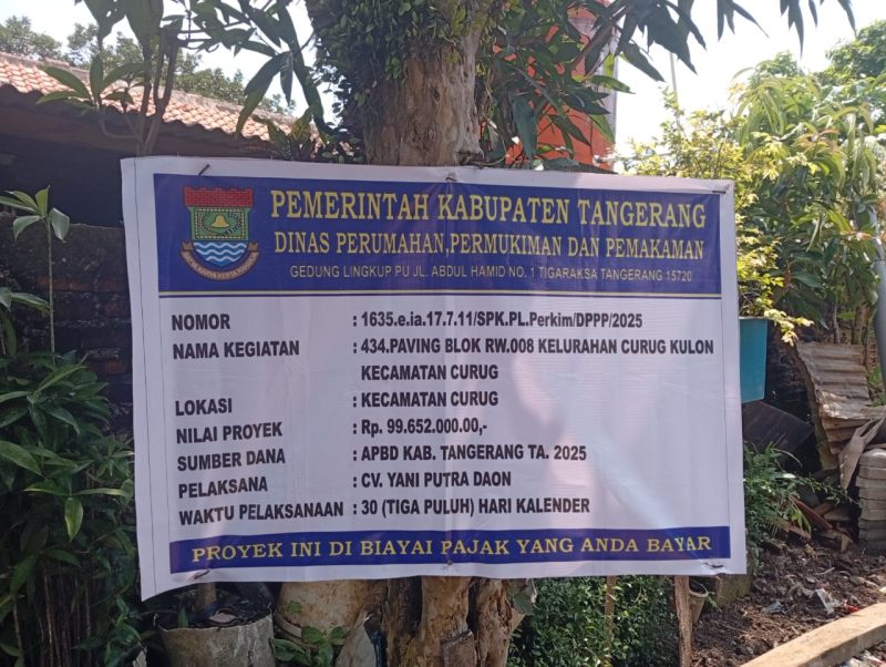 DENTUMNEWS.COM,Tangerang | Proyek pembangunan paving blok di RT 05/08, Kelurahan Curug Kulon, Kecamatan Curug, Kabupaten Tangerang, Banten, yang dikerjakan oleh CV Yani Putra Daon, kini berada dalam sorotan tajam publik. Hasil investigasi di lapangan mengindikasikan proyek tersebut diduga kuat sarat penyimpangan, mulai dari pencopotan papan informasi proyek, mutu pekerjaan yang dipertanyakan, hingga pengabaian total standar Keselamatan dan Kesehatan Kerja (K3).