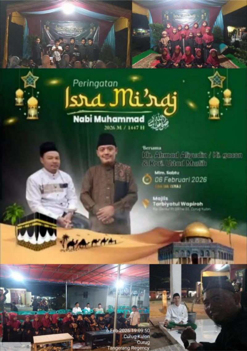 DENTUMNEWS.COM,Tangerang | Majelis Tarbiyatul Wapiroh akan menggelar peringatan Isra Mi’raj Nabi Muhammad SAW 1447 Hijriah/2026 Masehi. Kegiatan keagamaan ini dijadwalkan berlangsung mulai pukul 08.00 WIB hingga selesai, bertempat di Kampung Sentul RT 03 RW 03, Kelurahan Curug Kulon, Kecamatan Curug. Jumat (06/02/2026).