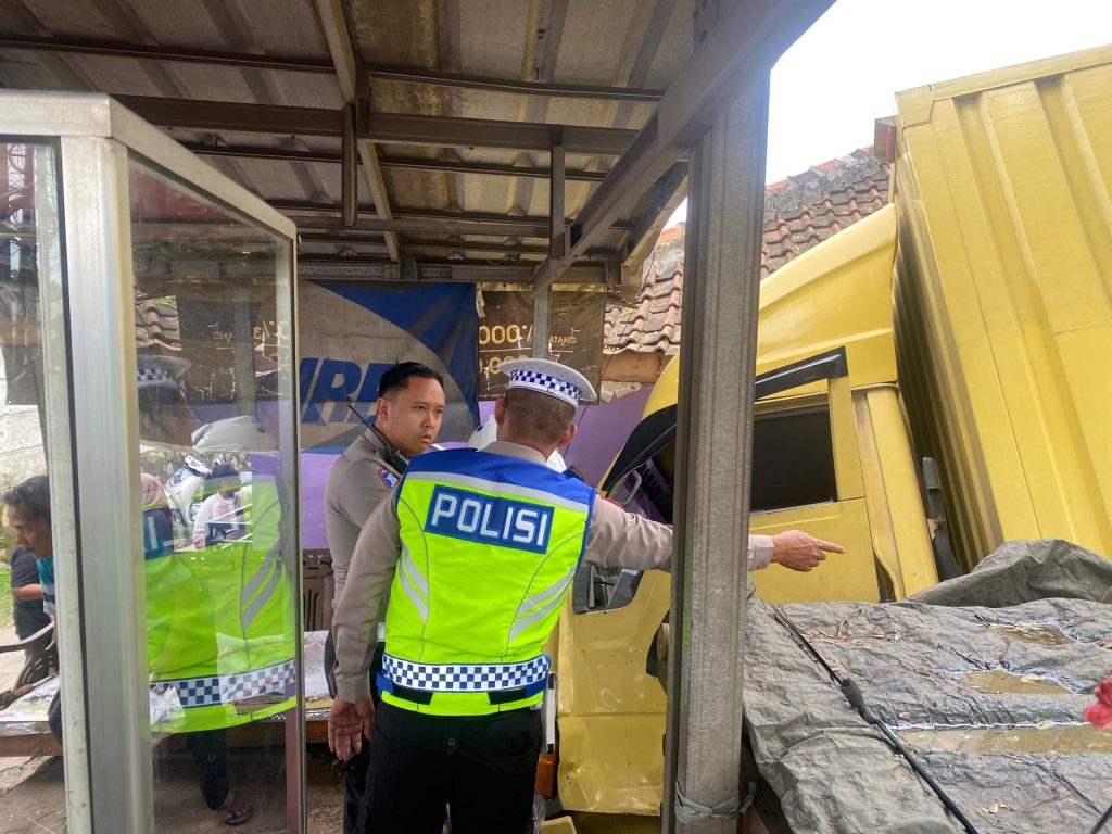 Akibat kejadian tersebut, satu unit mobil Mitsubishi Box mengalami kerusakan cukup parah, sementara bangunan rumah dan warung klontong turut terdampak.