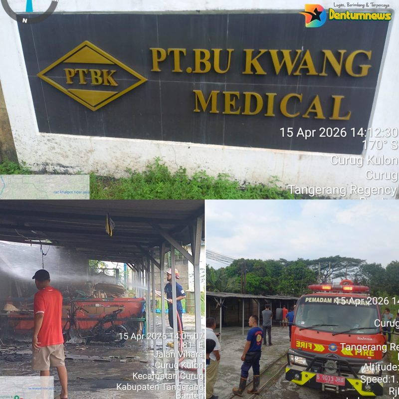DENTUMNEWS.COM,Tangerang | Kebakaran terjadi di area ruang parkiran PT. BU Kwang Medical yang berlokasi di Jalan Vihara RT 02 RW 07, Kelurahan Curug Kulon, Kecamatan Curug, Kabupaten Tangerang. Rabu, (15/4/2026).