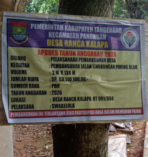 DENTUMNEWS.COM,Tangerang | Proyek pemasangan paving block senilai Rp83.140.100 di RT 001 RW 004, Desa Ranca Kelapa, Kecamatan Panongan, Kabupaten Tangerang, kini menjadi sorotan tajam. Proyek yang dikerjakan secara swakelola desa ini diduga kuat dikerjakan asal-asalan dan mengabaikan standar teknis konstruksi.Kamis (24/04/2026).
