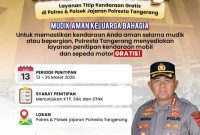 DENTUMNEWS.COM,Tangerang | Menjelang arus mudik Hari Raya Idul Fitri 1447 Hijriah, Kapolres Tangerang Selatan AKBP Boy Jumalolo, S.H., S.I.K., M.H. turun langsung melakukan pengecekan sejumlah…